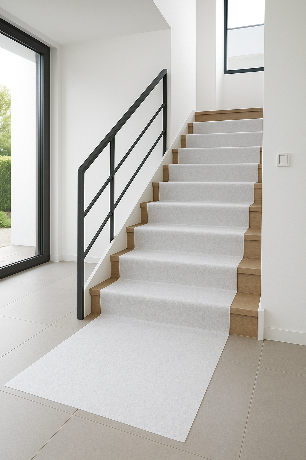 Das selbsthaftende Abdeckvlies „PRO“ schützt Böden, Treppen und Oberflächen zuverlässig bei Maler-, Renovier- und Montagearbeiten. Die rutschfeste Unterseite haftet sicher – ganz ohne Klebeband – und verhindert Verrutschen oder Wellenbildung. Das saugfähige Obervlies nimmt Farbe und Feuchtigkeit auf und sorgt für sauberes, effizientes Arbeiten.